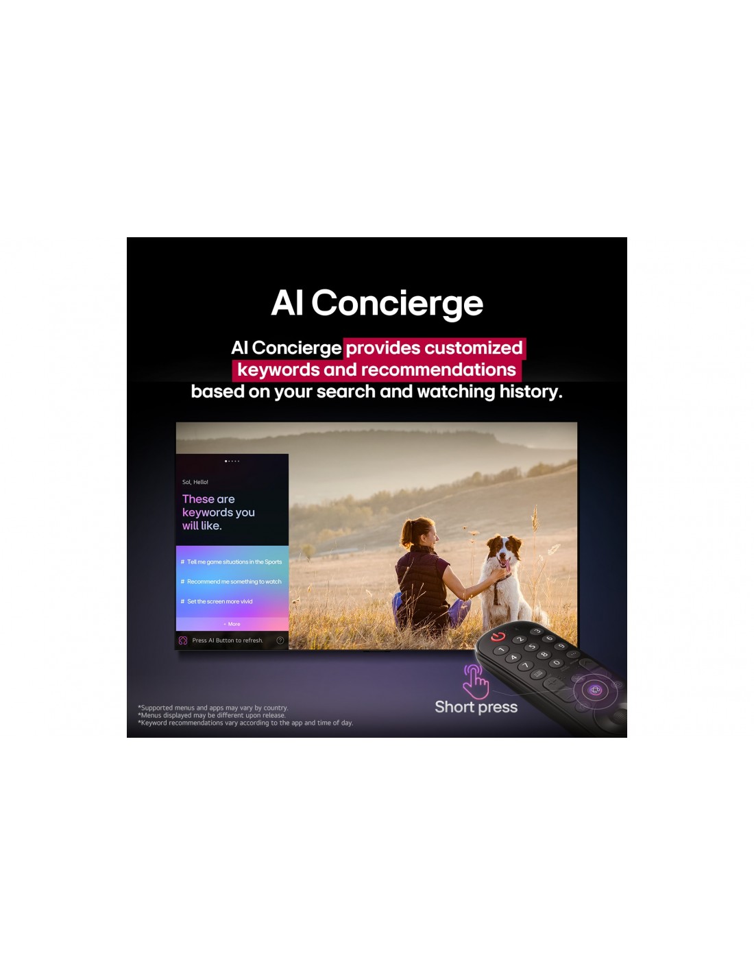 Premendo brevemente il pulsante AI sul telecomando si apre l’AI Concierge, che fornisce parole chiave e consigli personalizzati basati sulla cronologia delle ricerche e dei filmati.