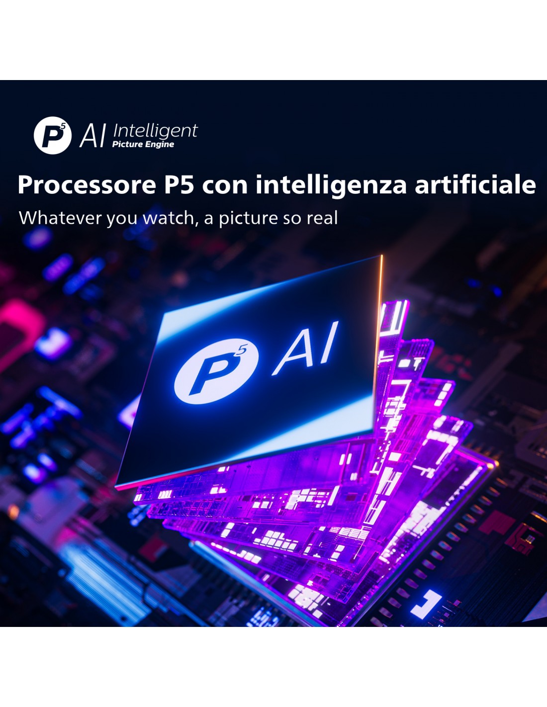 Il processore Philips P5 con intelligenza artificiale offre immagini così realistiche che ti sembrerà di viverle. Un algoritmo di intelligenza artificiale ad apprendimento profondo elabora le immagini in modo simile al cervello umano. Indipendentemente dal contenuto riprodotto, otterrai dettagli e contrasto realistici, colori brillanti e movimenti fluidi.