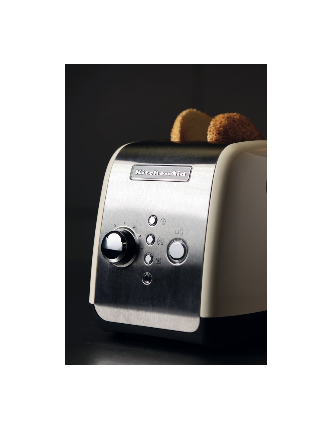 Il tostapane 2 fette automatico (5KMT221) è un tostapane contemporaneo dal design compatto. Disponibile in una gamma di colori eleganti, ha un corpo robusto interamente in metallo e una manopola di controllo cromata.