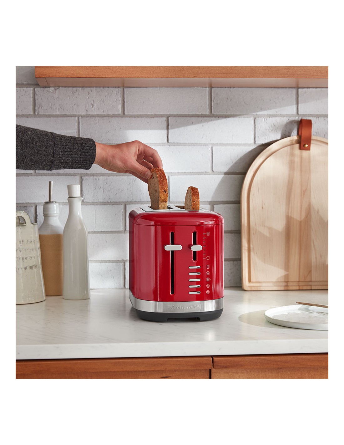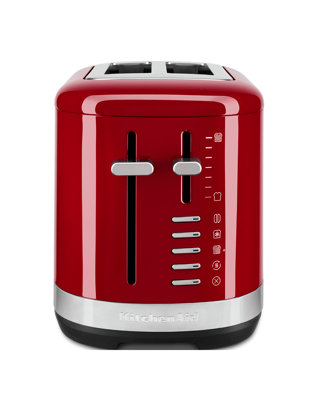 Il design interamente in metallo aggiunge stile al tuo piano di lavoro. Questo tostapane a due fette di KitchenAid è progettato per l'uso quotidiano, così potrai continuare a sperimentare per molti anni a venire. Sulla parte anteriore è presente la leva di sollevamento manuale, per raggiungere anche i formati di pane più piccoli. Design di qualità in ogni dettaglio.