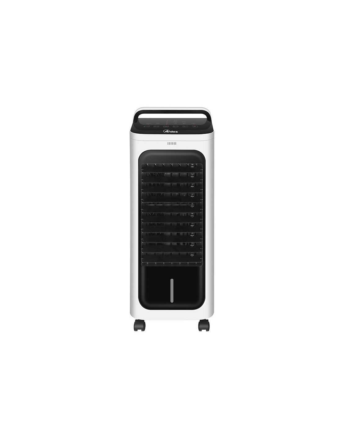 Raffrescatore d’aria multifunzione: aria fresca d’estate e calda d’inverno. 3 velocità di ventilazione. Grazie alla tecnologia evaporativa, raffresca con un basso consumo energetico mediante aria che passa attraverso acqua fresca e ghiaccio. 2 livelli di riscaldamento. L’oscillazione automatica delle alette verticali distribuiscono uniformemente aria fresca nell’ambiente. Inclinazione delle alette orizzontali per direzionare l’aria. Pannello comandi touch e display LED. Telecomando. Filtro anti polvere. Maniglia e ruote per il trasporto.