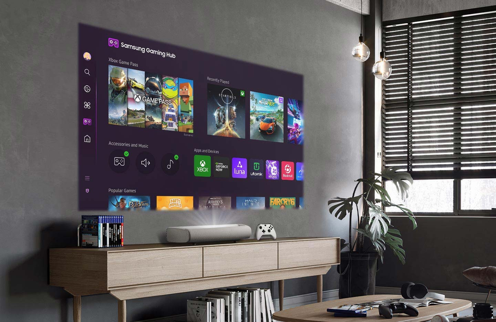 Grazie all'hub SmartThings integrato in The Premiere è possibile collegare e controllare i dispositivi smart senza la necessità di utilizzare altri dispositivi. Potrai anche ricevere notifiche sullo stato dei dispositivi smart direttamente durante la proiezione dello schermo.