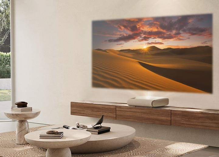 Con lo schermo panoramico da 120 pollici ti sembrerà davvero di essere al cinema, e potrai guardare i tuoi contenuti preferiti in una spettacolare risoluzione 4K.