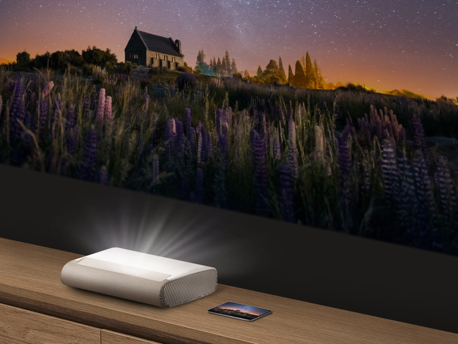 Decorazione personalizzata degli ambientiQuando non guardi programmi o altri contenuti, potrai utilizzare The Premiere per proiettare qualsiasi immagine. Scegli tra le opzioni predefinite oppure carica unimmagine dal tuo dispositivo mobile per esprimere tutta la tua creatività e la tua vena artistica.