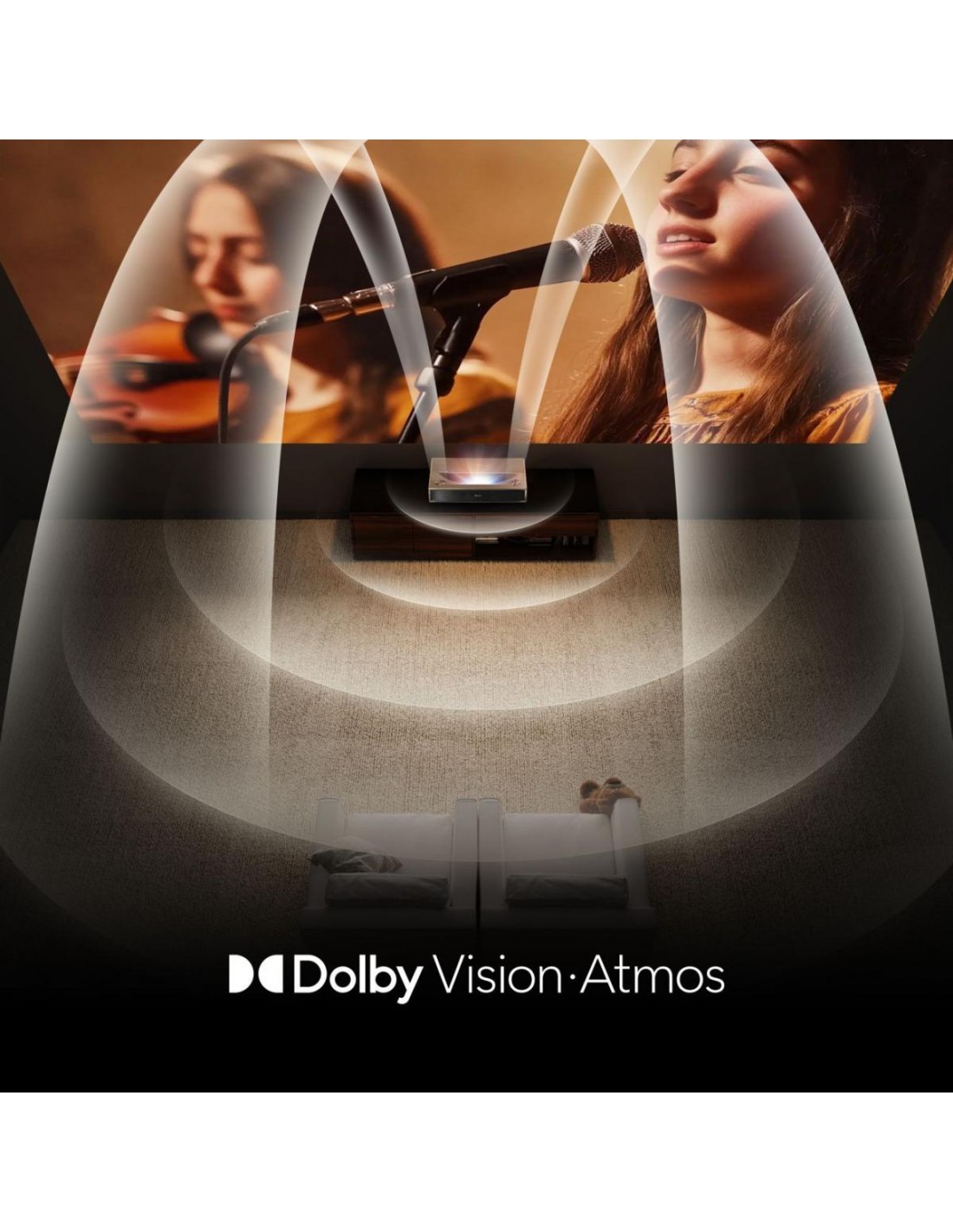 Embraced by surround sound from both your Laser Cinema and soundbar. With Hi-Concerto, your speakers work together to optimize all the audio channels to operate as one.*Only works with selected Hisense Audio models.